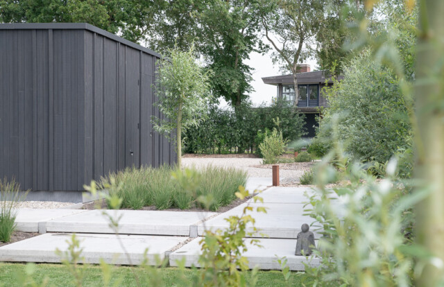 Bestrating is een belangrijk onderdeel in het ontwerp, zonder overheersend te zijn.