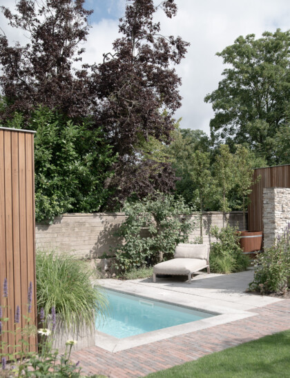 Ik geniet als tuinontwerper iedere dag weer van het contrast tussen strakke lijnen en bestrating en de afwisseling met een wat lossere beplanting.